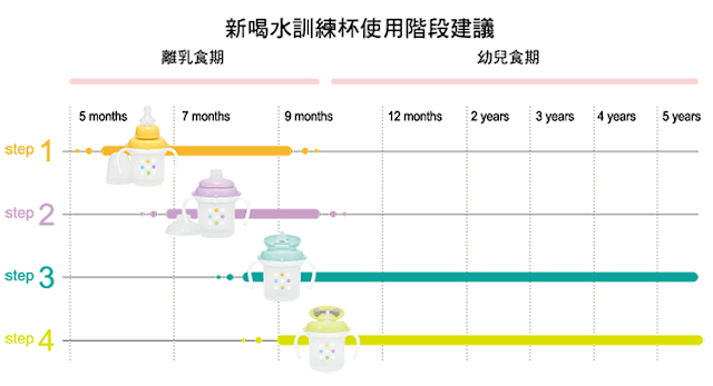 小寶貝6個月開始,我們就在想應該訓練他喝開水,所以開始注意市面上相關的產品,「喝水訓練杯」這類產品,幾乎各大廠牌都會出一系列的相關產品,區分各不同階段,以適應寶寶發展。