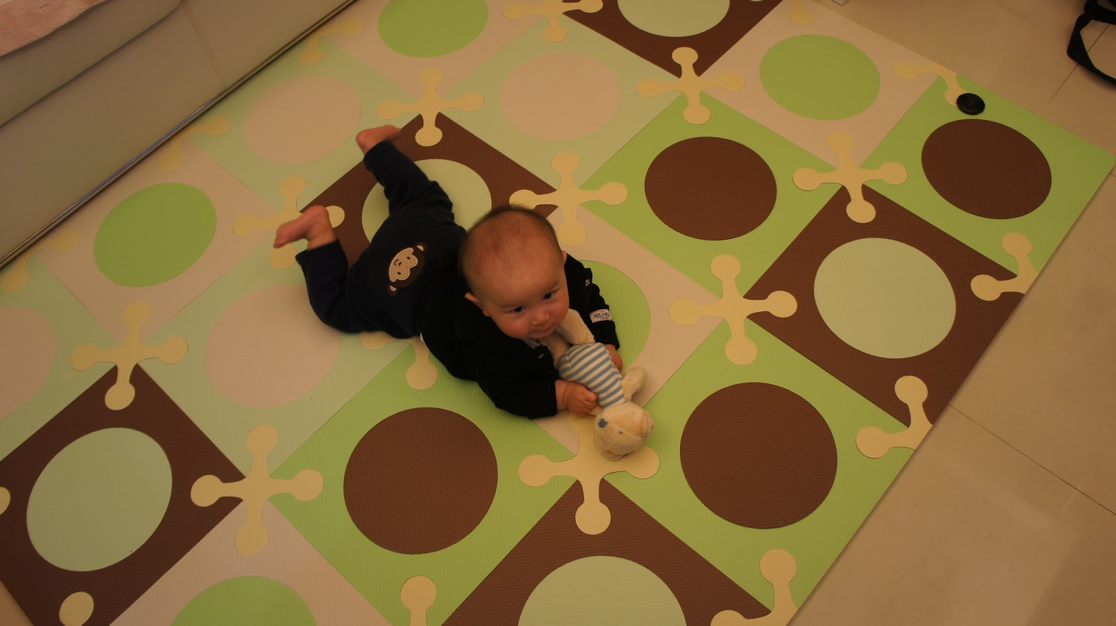 小寶貝已經快滿八個月,人家說「七坐八爬」,所以我們很早就在找適合的地墊,好給寶貝一個安全的爬行環境,當然看了過去的新聞報導,很多這樣的地墊,因為都是塑膠製品,容易含有毒性,所以我們這方面一直很注意,希望找個安全、無毒又好看的地墊。